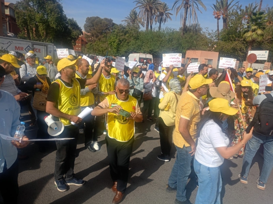 نظمت النقابة الوطنية للصحة إل صبيحة يومه الاربعاء 5 نونبر، إنزالا وطنيا ومسيرة احتجاجية بمدينة مراكش، احتجاجا على “ضرب العرض الصحي والخدمات المقدمة للمواطنين، واستفحال مظاهر الفساد واللاعقاب داخل القطاع الصحي بالجهة، وسط صمت مريب للمسؤولين”.