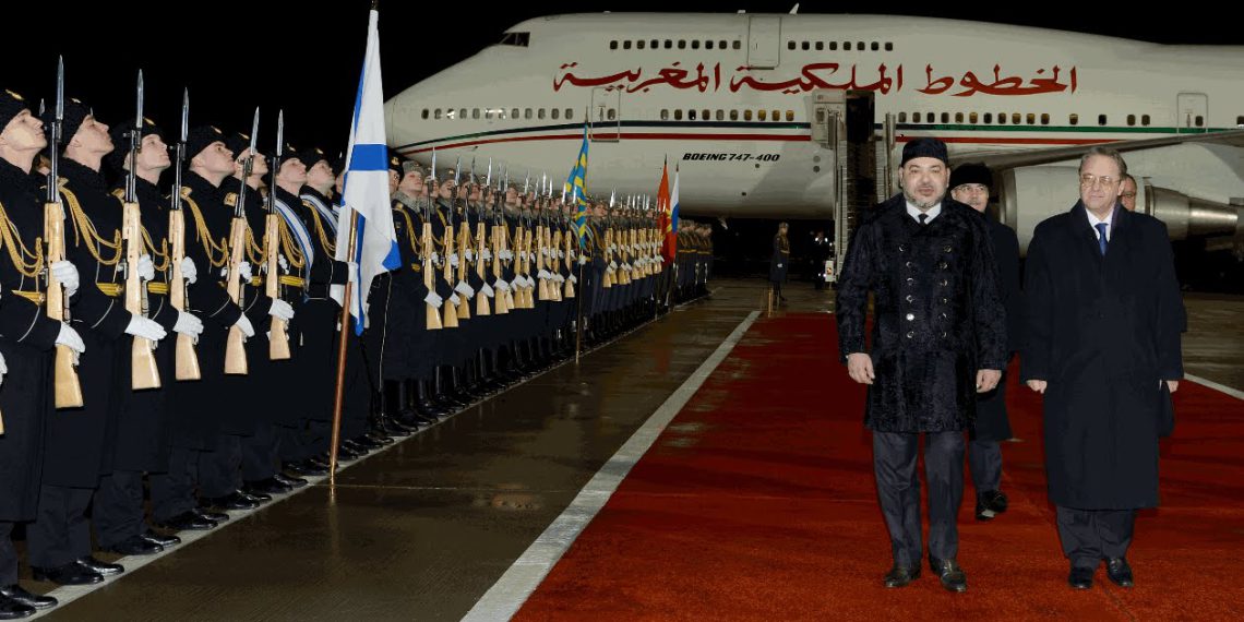 لحظة وصول الملك محمد السادس إلى مطار فنوكوفو – بموسكو روسيا