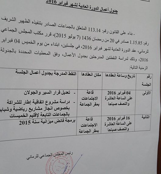 كما تدارس المجلس نشروع اتفاقية تخص احداث ملاعب رياضية لجماعات اقليم الخميسات.