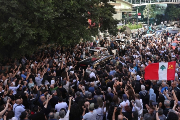 وحمل البعض ملصقا بتوقيع “أصدقاء المناضل جورج عبدالله”، يجمع صورة الرحباني مع صورة هذا الناشط اللبناني المؤيد للفلسطينيين الذي عاد الجمعة، في اليوم السابق لوفاة الفنان، إلى مسقط رأسه في شمال لبنان الجمعة بعد أن أمضى أكثر من 40 عاما خلف القضبان في فرنسا لإدانته بالتواطؤ في اغتيال دبلوماسيين أمريكي وإسرائيلي في ثمانينات القرن الماضي.